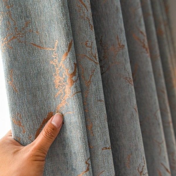 Curtains made from woven fabric with raised patterns and textured designs.