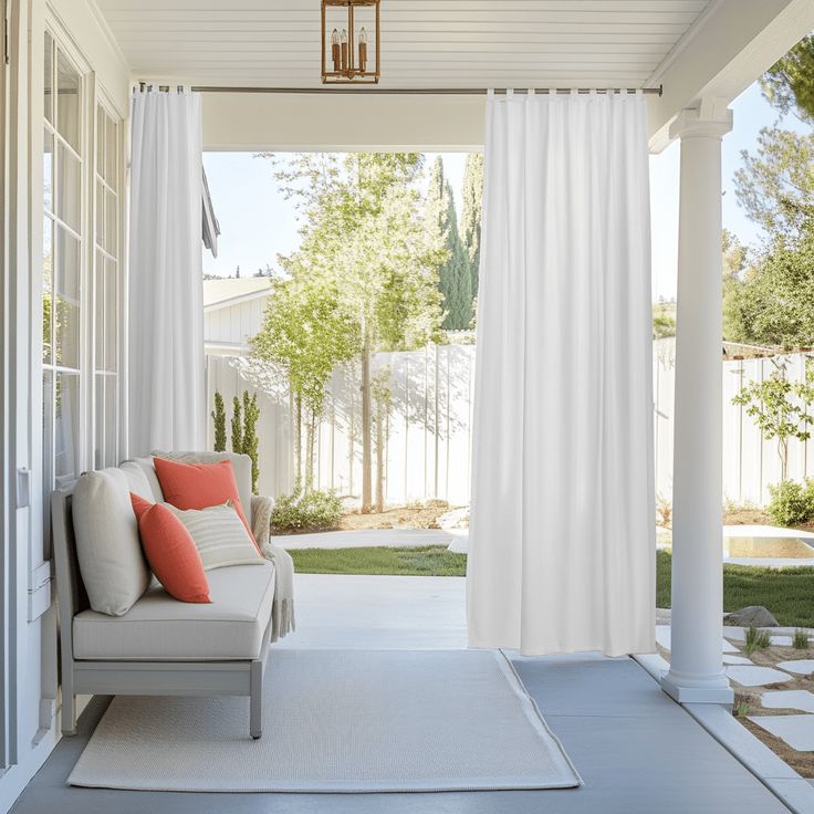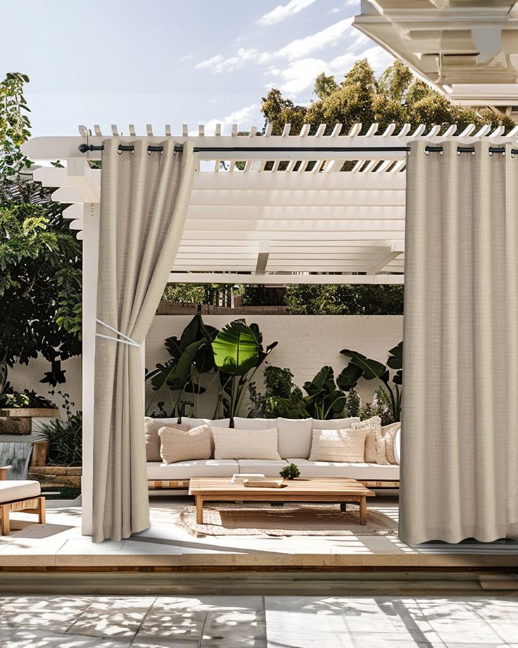 Weather-resistant curtains made to withstand sunlight, wind and moisture in outdoor areas.